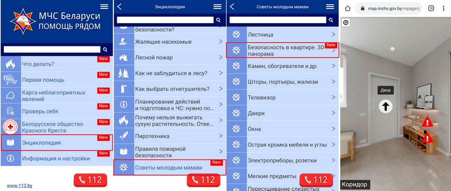 В мобильном приложении «Помощь рядом» появилась виртуальная 3D-карта для молодых родителей. Она создана в результате совместной работы представителей инициативы «Дети в безопасности» и МЧС Беларуси. Цель – предупреждать несчастные случаи с детьми в быту, используя интерактивные средства. Раздел «Безопасность в квартире. 3D панорама» можно найти во вкладке приложения «Энциклопедия» – «Советы молодым родителям».