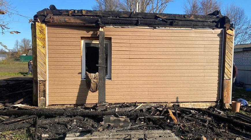 В результате пожара в доме уничтожена кровля и потолочное перекрытие, закопчены стены.