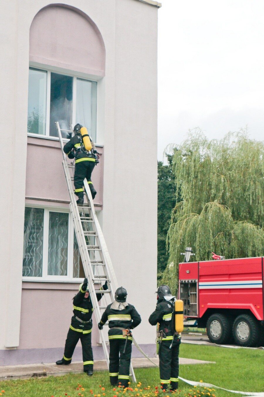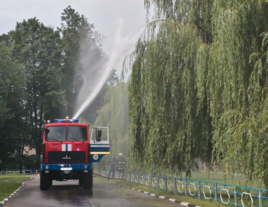 Пож-15Кульмінацыяй свята стала дэманстрацыя супрацоўнікамі РАНС сваіх навыкаў і ўменняў падчас ліквідацыі пажара, на шчасце, у гэты раз ён быў імправізаваны. Гледачы, а на свята завітала вялікая колькасць жыхароў горада, прадстаўнікоў калектываў і арганізацый, а таксама моладзі і выхаванцаў дзіцячых садкоў, з захапленнем назіралі за зладжанымі дзеяннямі пажарных і ўзнагароджвалі байцоў бурнымі апладысментамі. Заварожваючым і відовішчным было воднае шоу, якое супрацоўнікі РАНС выканалі пры дапамозе пажарнай тэхнікі.