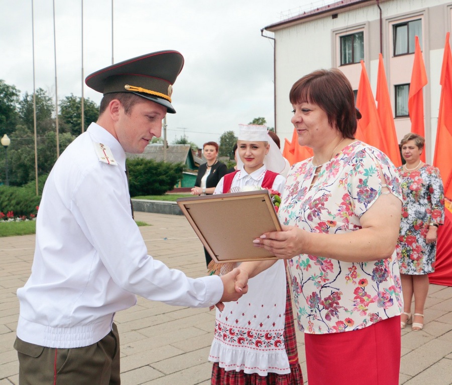 Віншаванні ў адрас віноўнікаў урачыстасці ад імя раённага выканаўчага камітэта і раённага Савета дэпутатаў выказала Галіна Слабоднікава. Звяртаючыся да прысутных, яна адзначыла, што за гады існавання пажарнай службы яе роля застаецца нязменнай і зараз: першай прыходзіць на дапамогу, выратоўваць лю­дзей, трапіўшых у бяду, часта рызыкуючы ўласным жыццём. За свой службова-баявы шлях, спалучаны з трывогамі і небяспекамі, беларускія пажарныя неаднаразова дэманстравалі самаадданасць, стойкасць і адвагу.
