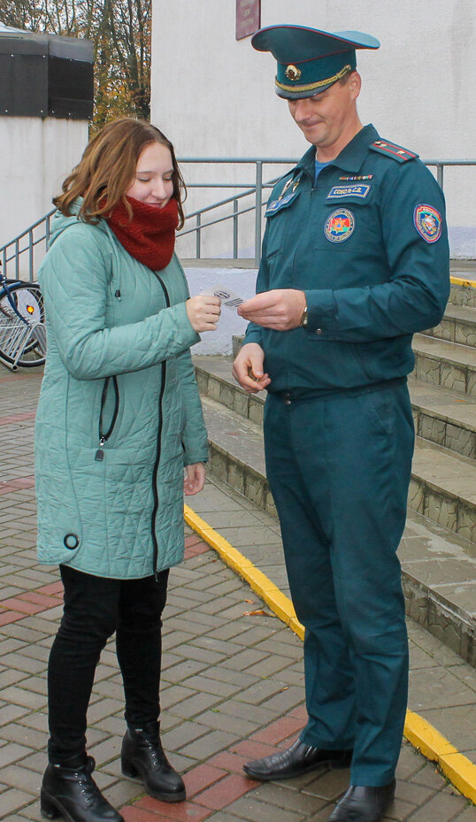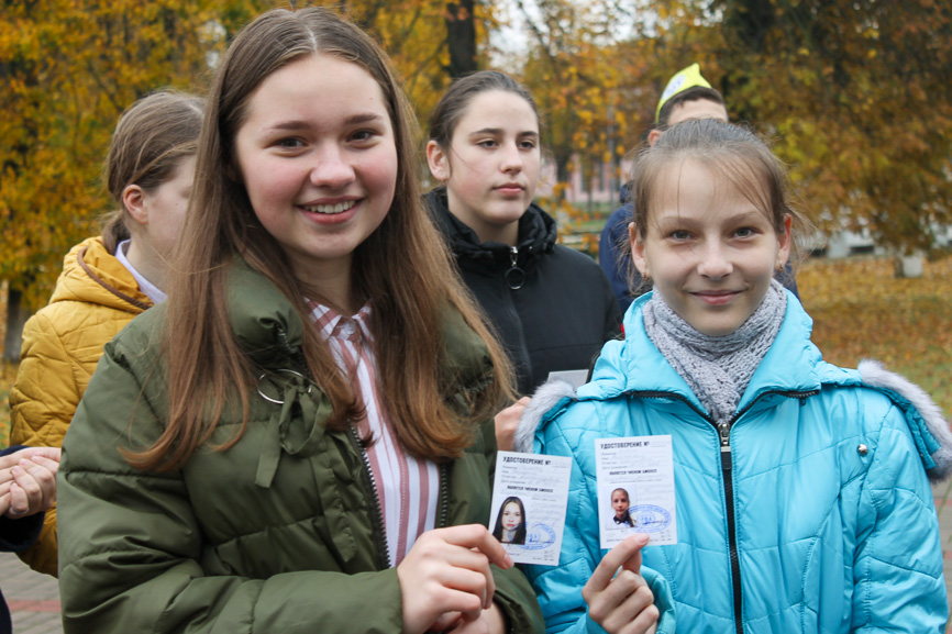 А далее председатель районного отделения БМООСП Сергей Соболь поздравил учащихся со вступлением в ряды БМООСП и вручили удостоверения.