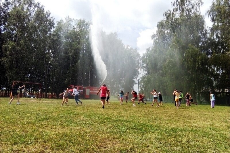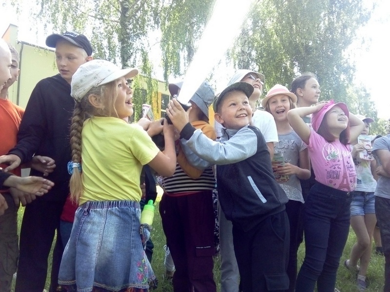 В каждом лагере дети с нетерпением ждали приезда спасателей, особенно большого и красного пожарного автомобиля.