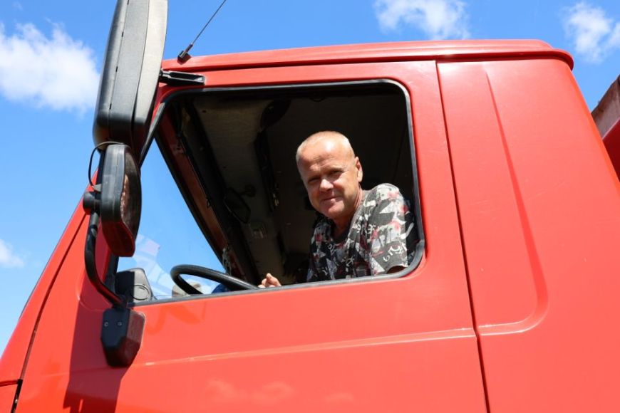 У невялікім перапынку паміж абедам і выхадам у поле паспелі пагутарыць з перадавым кабайнерам РАПТЗ – Сяргеем Чудапалам, які працуе ў пары з Аляксандрам Выганоўскім. Напрыканцы дня ў нядзелю, 21 ліпеня, іх экіпаж намалаціў больш за тысячу тон збожжа. Гэтае жніво для Сяргея Міхайлавіча 18-е па ліку. Сёлета ён шчыруе на новенькім камбайне КЗС-1218 вытворчасці ААТ “Гомсельмаш”. Родам працаўнік з Расіі. Нарадзіўся ў вялікай сялянскай сям’і, з дзяцінства быў прывучаны да напружанай сельскагаспадарчай працы. На Кірыўшчане знайшоў сваю другую палову, тут жа і прафесійнае прызванне.