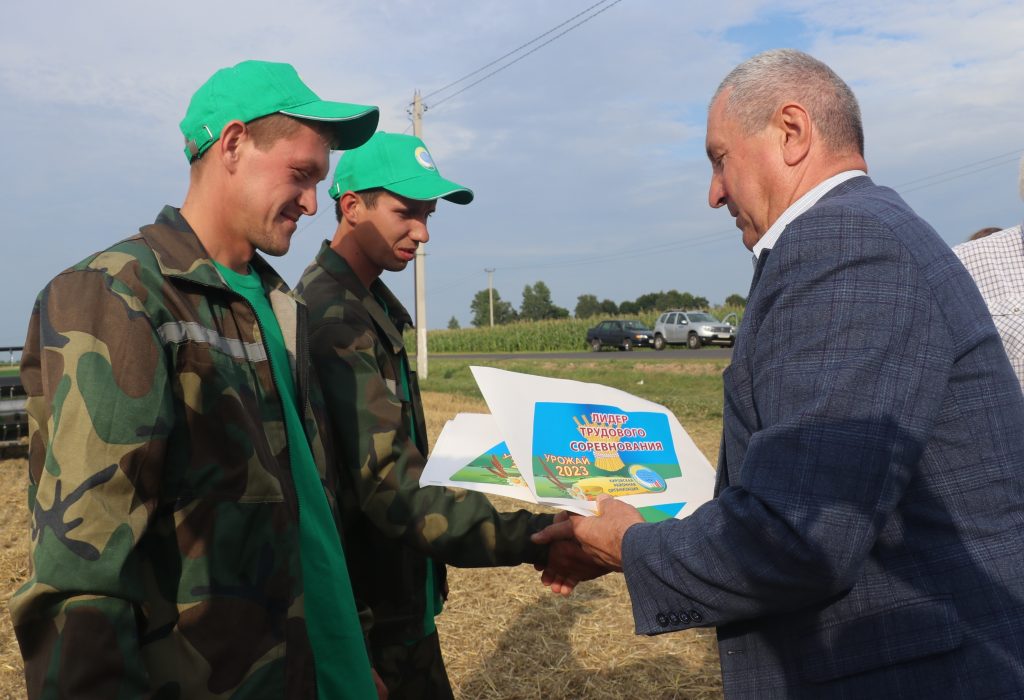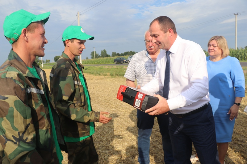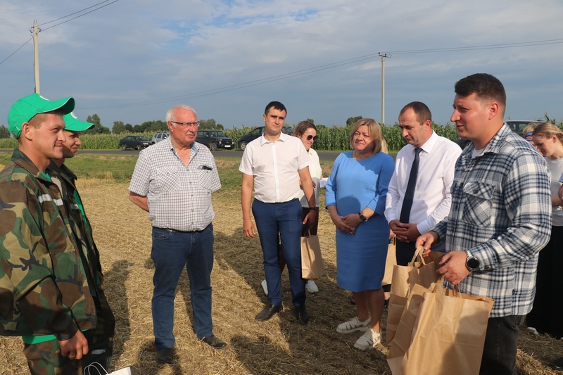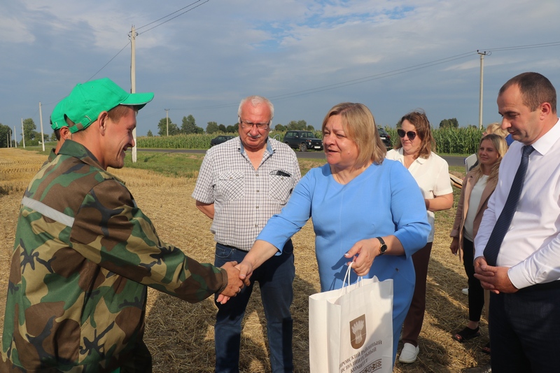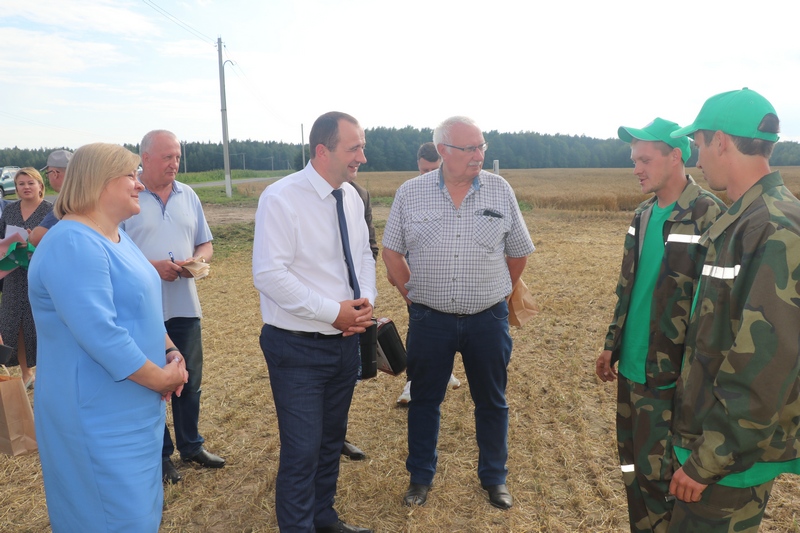 Сегодня прямо на поле в д.Подречье с первыми трудовыми победами в жатве-2023 хлеборобов приехали поздравить первый заместитель председателя Могилёвского облисполкома Сергей Савицкий, руководство района во главе с председателем райисполкома Галиной Слабодниковой, директор «Рассвета» Александр Багель, профсоюзные и молодёжные лидеры.