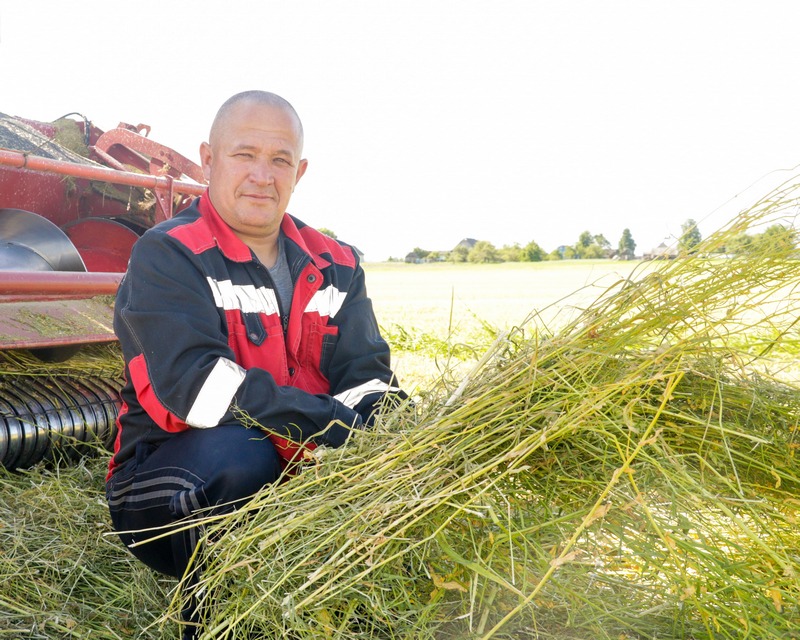 Першымі сёлета вывелі на сенажаці трактары з касілкамі Мікалай Таранаў, Сяргей Ярыгін і Генадзь Макаронак. Дарэчы, апошні з механізатараў працуе на 9-мятровым агрэгаце, які дазваляе пры кашэнні траў адразу зграбаць іх у валкі, такім чынам эканомяцца ГЗМ і адпадае неабходнасць пускаць услед граблі. З пастаўленай задачай механізатары спраўляюцца выдатна, бо для кожнага з іх касавіца – справа звыклая.