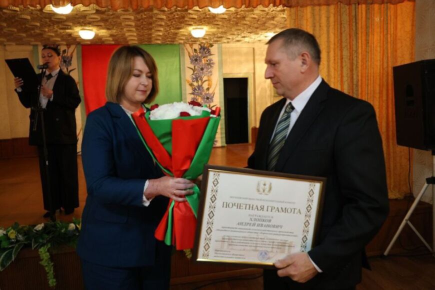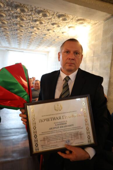 Тракторист-машинист Андрей Хлопков был удостоен Почетной грамоты Могилёвского облисполкома за свои высокие достижения в работе.