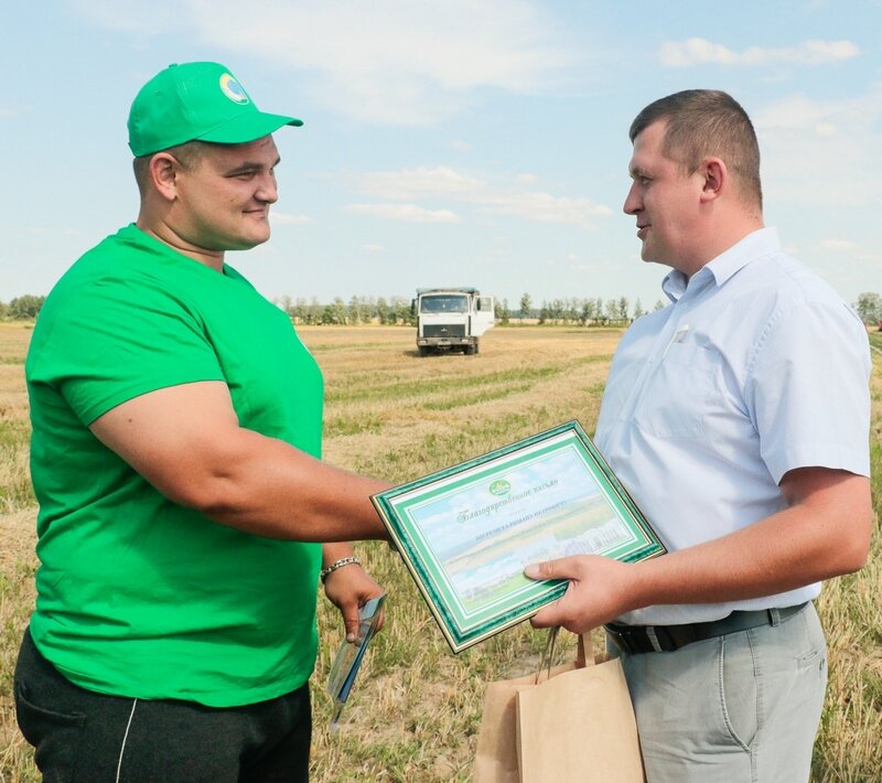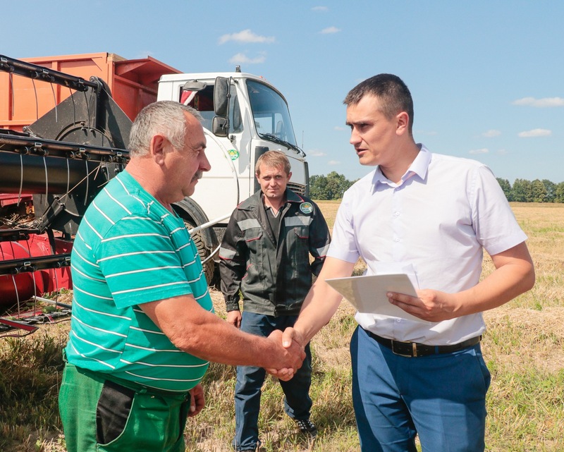 Сегодня в поле передовиков поздравили с высокими производственными показателями первый заместитель председателя – начальник управления по сельскому хозяйству и продовольствию Кировского райисполкома Александр Киселев, председатель райкома профсоюза работников АПК Виктор Ставер, первый секретарь райкома ОО «БРСМ» Наталья Валынцева, директор сельхозорганизации Андрей Валынцев. Лидерам-механизаторам и водителю были вручены дипломы и подарки.