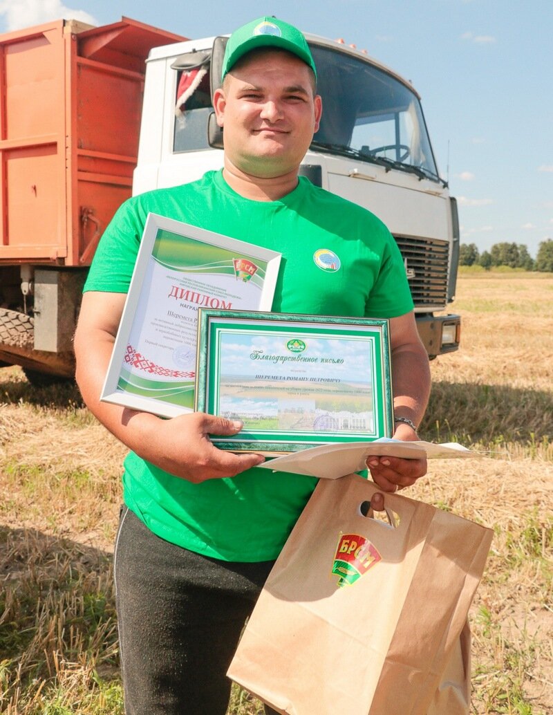 Роман Шеремета – самый молодой водитель сельхозорганизации. Его высокая активность в труде позволяет ежегодно занимать лидирующие позиции во время отвозки от уборочной техники зерна, маслосемян рапса, кукурузы. Парень позитивен, общителен и трудолюбив, за что его и уважают коллеги.