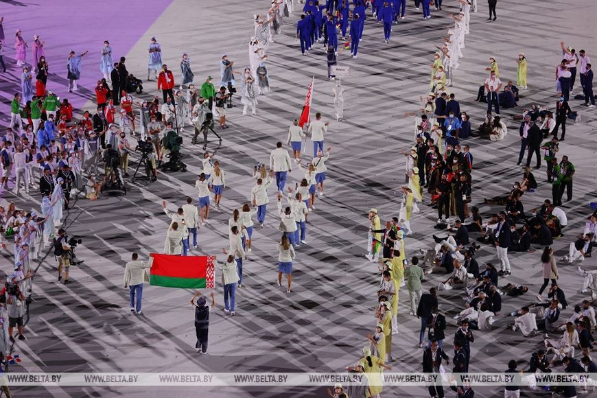 Очередность выхода команд на дорожки определялась согласно японскому алфавиту. Открыли шествие олимпийцы Греции. За ними — команда беженцев. Белорусы проследовали за сборной Венесуэлы. В Токио выступят 108 представителей нашей страны в 20 видах спорта. Роль знаменосцев исполнили Анна Марусова, которая будет соревноваться в стрельбе из лука, и пловец Никита Цмыг. Замкнула парад многочисленная японская олимпийская дружина, которой тут прочат третье место в неофициальном командном зачете. По данным организаторов, в параде участвовали около 5,7 тыс. представителей 207 национальных олимпийских комитетов.