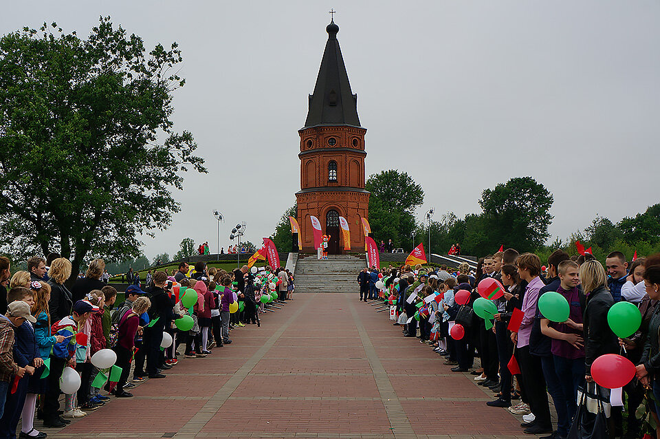 «Пламя мира» побывало на памятнике природы республиканского значения «Голубая криница», Замковой горе. Далее факел отправился на Быховщину. http://www.slavgorod.by