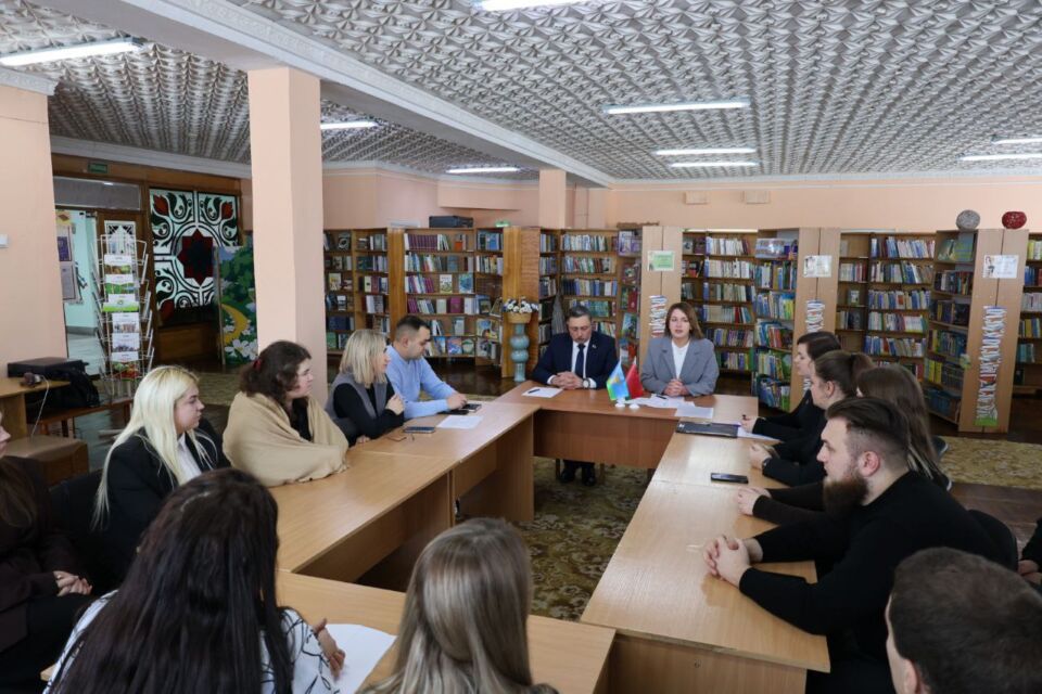 В информационно-идеологическом центре района состоялась встреча председателя районного Совета депутатов Елены Сакадынец и заместителя председателя райисполкома Вячеслава Невинского с молодёжным...
