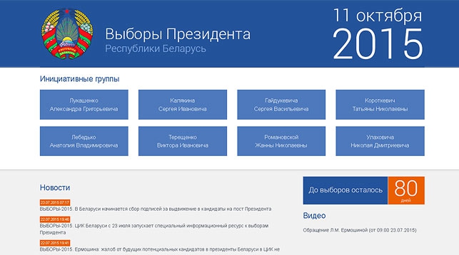 ВЫБОРЫ-2015. Начал работать информационный ресурс к выборам Президента Беларуси