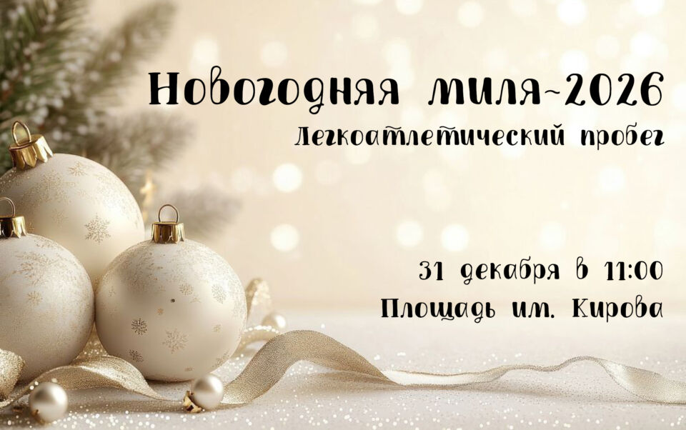 31 декабря 2025 года. Площадь им. Кирова — традиционный легкоатлетический пробег «Новогодняя миля-2026».К участию в соревнованиях допускаются все желающие лица...