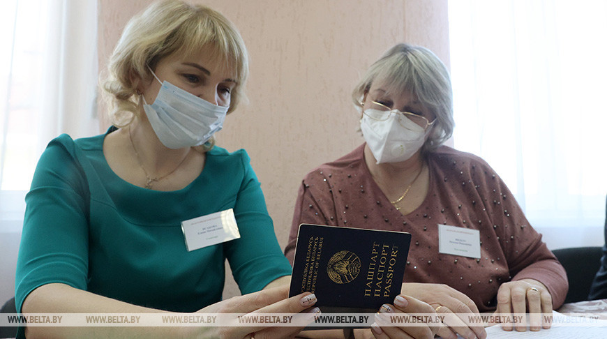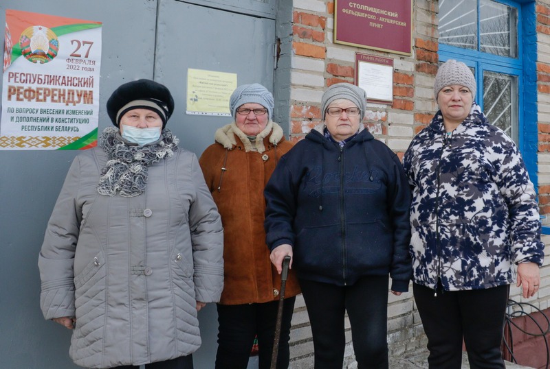 Жительницы деревни Столпище Мария Николаевна Кудинова, Татьяна Николаевна Коломеец, Наталья Николаевна Лагойко пришли на Столпищский участок для голосования №11 в...