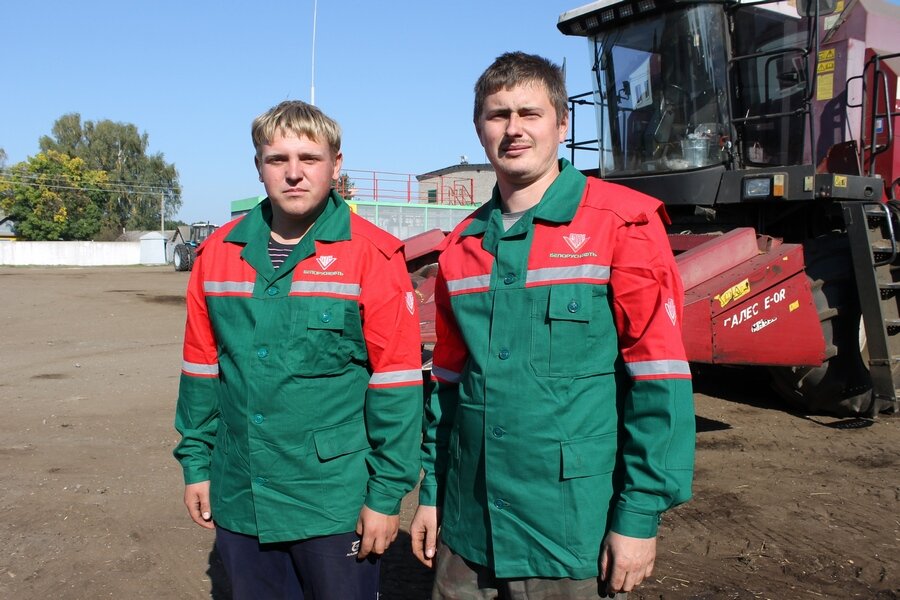 Механізатары Сяргей Цыбульскі і Сяргей Юхнавец заняты на ўборцы кукурузы на зерне Штодня ў гэтую восеньскую пару працаўнікі сельгасарганізацый раёна...