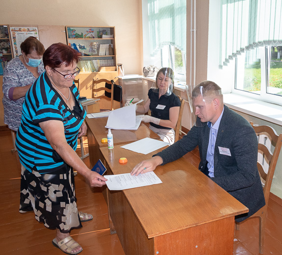 В первый день досрочного голосования по выборам Президента Республики Беларусь пришла на Букинский участок для голосования №6 пенсионерка Галина Федоровна Щербич. Ее приветливо встретила председатель участковой комиссии Ирина Шкредова.