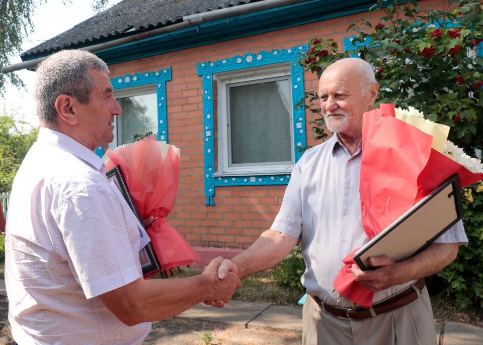 Поздравить юбиляра в агрогородок Барсуки приехали первый заместитель председателя – начальник управления по сельскому хозяйству и продовольствию райисполкома Александр Киселев, его первый заместитель Антонина Сметана, председатель райкома профсоюза работников АПК Виктор Ставер, а также директор КСУП «Нива-Барсуки» Иван Рыняк.