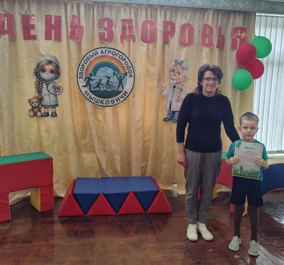 Организаторы праздника вручили детям дипломы по итогам фотоконкурса «Здоровый дворик», который прошел среди их семей, медали «Мышковичи — здоровый агрогородок» и сладкие призы.