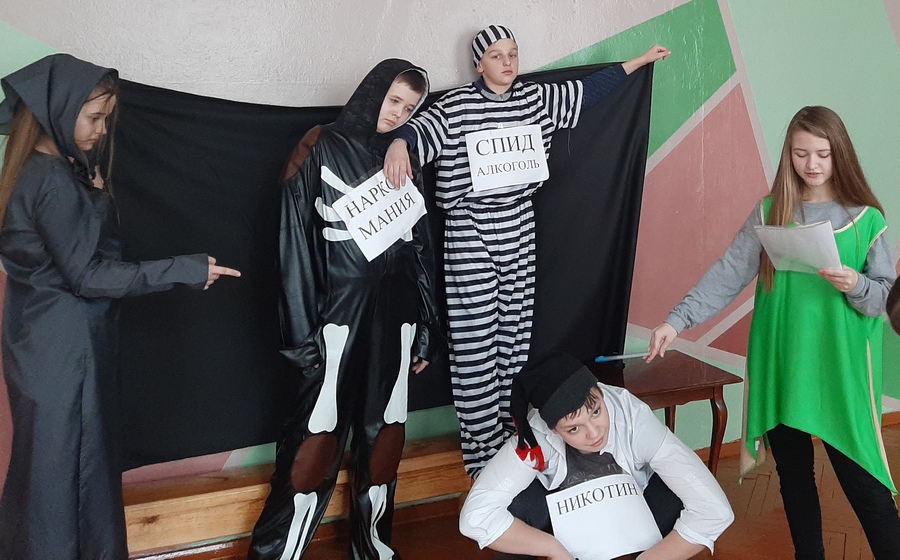 На примере театрализованной постановки, в которой участвовали сами подростки, было образно показано, как губительны для человека в современном обществе эти страшные привычки.