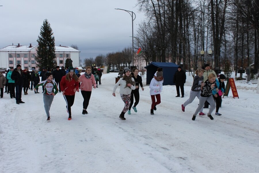А пачалося ўсё са стартаў каля ёлкі. З правіламі спаборніцтваў, дыстанцыямі ўдзельнікаў азнаёміў галоўны суддзя мерапрыемства, старшыня ФСК раёна Віктар Бялянаў. Забегі праходзілі пры суправаджнні аўтамашыны аддзялення дзяржаўтаінспекцыі РАУС па двух кругах у залежнасці ад узроставых катэгорый. Вялікі круг, які праходзіў па вуліцах Кірава, Карла Маркса, Савецкай і Ленінскай пераадольвалі юнакі і мужчыны ва ўзросце ад 15 да 39 гадоў. Астатнія, у тым ліку і ўсе дзяўчаты і жанчыны скарачалі круг, паварочваючы на вул.Камсамольскую. Фініш, зразумела, быў на плошчы.