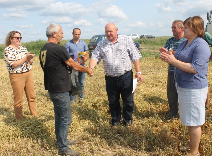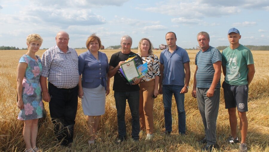 По случаю успеха сегодня Владимира Ермолаева ждали приятные сюрпризы. Прямо в поле поздравить водителя прибыли председатель райисполкома Галина Слабодникова, ее заместитель Татьяна Белявская, представитель райкома профсоюза работников АПК Лариса Еркович, руководство и профком сельхозпредприятия. Галина Слабодникова вручила лидеру ценный подарок, директор КСУП «Нива-Барсуки» Иван Рыняк порадовал водителя денежной премией, также подарки были адресованы передовику и от райкома профсоюза работников АПК.